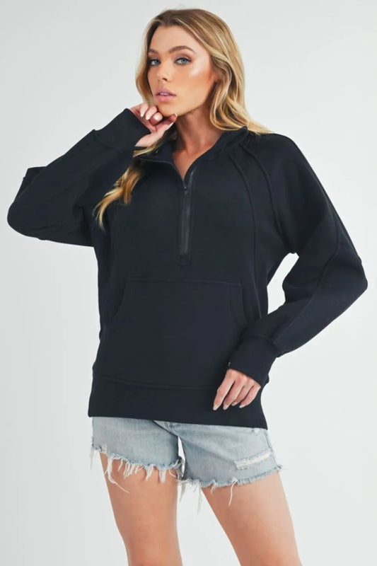 Half Zip Raglan Sleeve Sweatshirt with Kangaroo Pocket